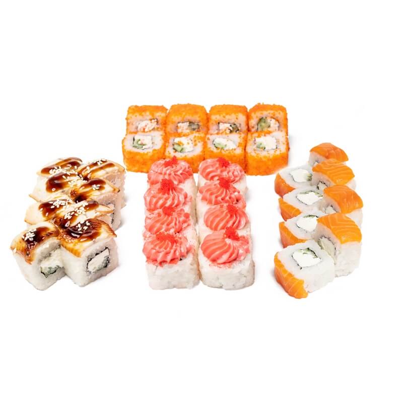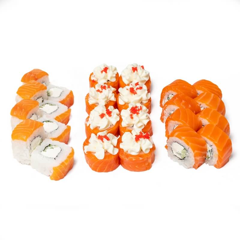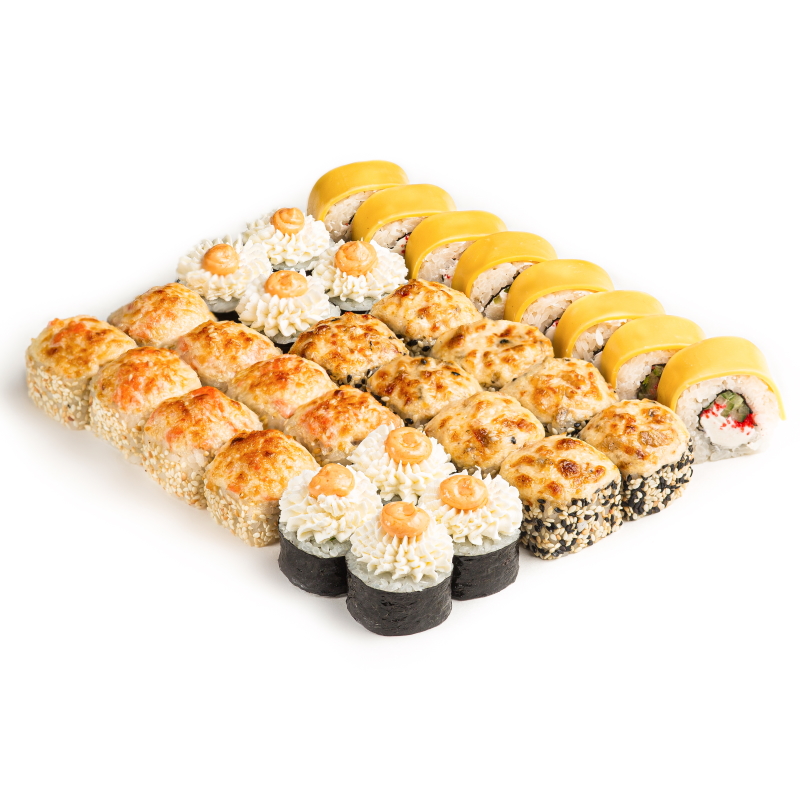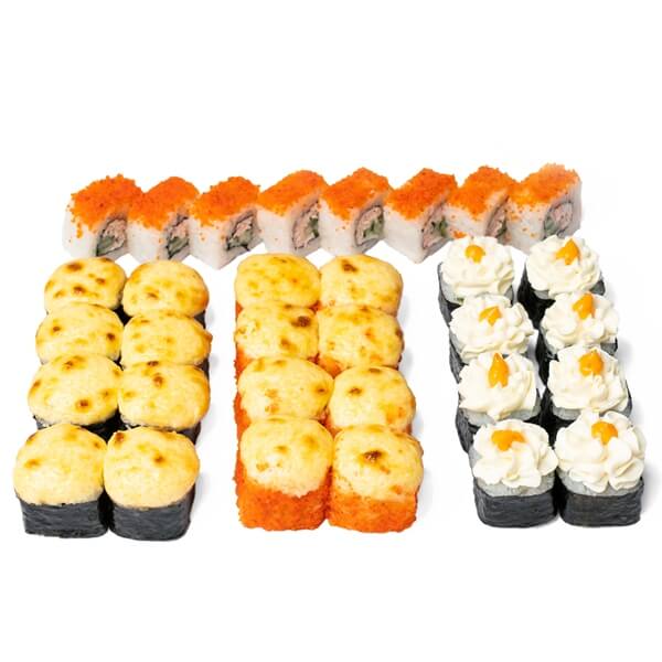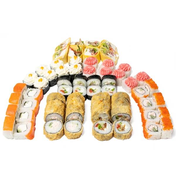 Помните мем с котами, который покорил сердца всех?:) Это крутой и выгодный набор с рыбным (жареный и свежий лосось) изобилием на большую компанию. Кстати, некоторые роллы вы можете попробовать только в составе этого сета. В "Много рыбов" 10 различных порций: Лава BBQ, Бонито, Сяке BBQ, Гейша, Асахи, Сноу Биг Гриль, Гейша Хот, Сяке Гриль, Темпура BBQ, Темпура Гейша. СЕТ АКЦИОННЫЙ: РАСЧЁТ БОНУСАМИ и СКИДКА НА САМОВЫВОЗ НЕ ДЕЙСТВУЮТ!