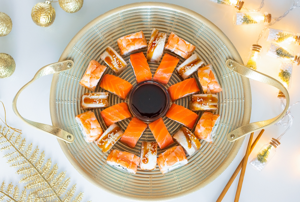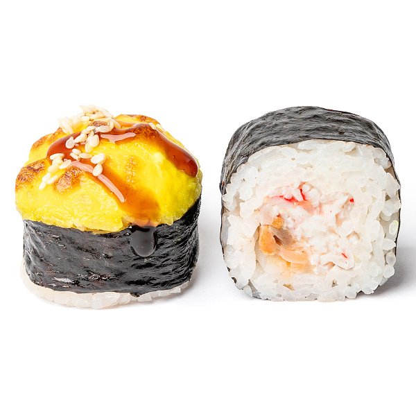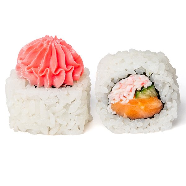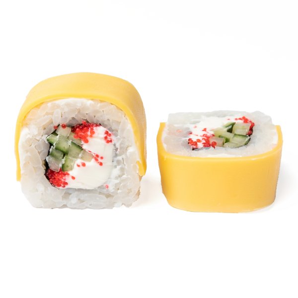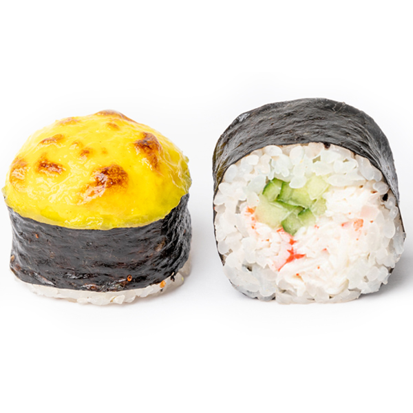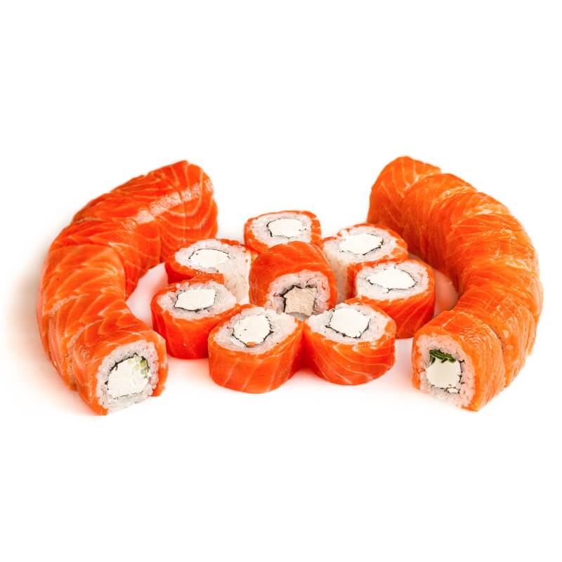 6. роллы Гейша: рис миксованный, нори, сыр Креметта, лосось премиальный, огурец, икра масаго.