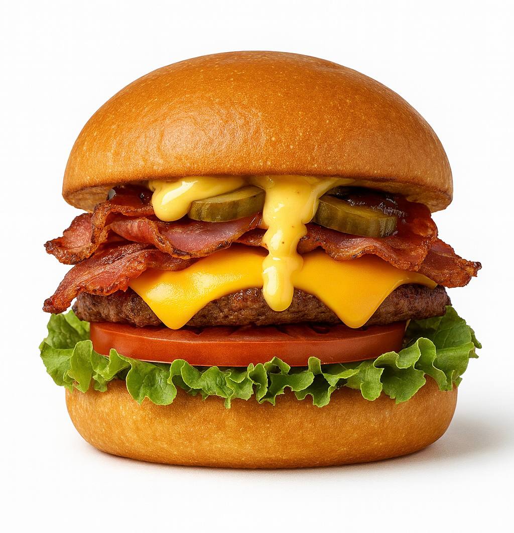 Когда просто вкусно — это не про нас. У нас ЗБС. Говяжья котлета, хрустящий бекон, лучок, сочный томат, лист салата и бургерный соус — всё это в мягкой пшеничной булке. Съел — и стало ЗБС. Проверено.