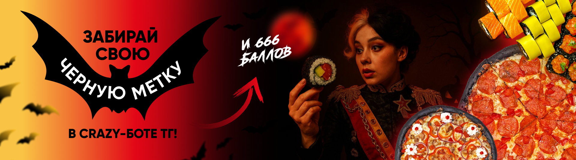 Только с 30 октября по 2 ноября — сделай заказ и получи 666 бонусов от нашего CrazyBot в Telegram.
